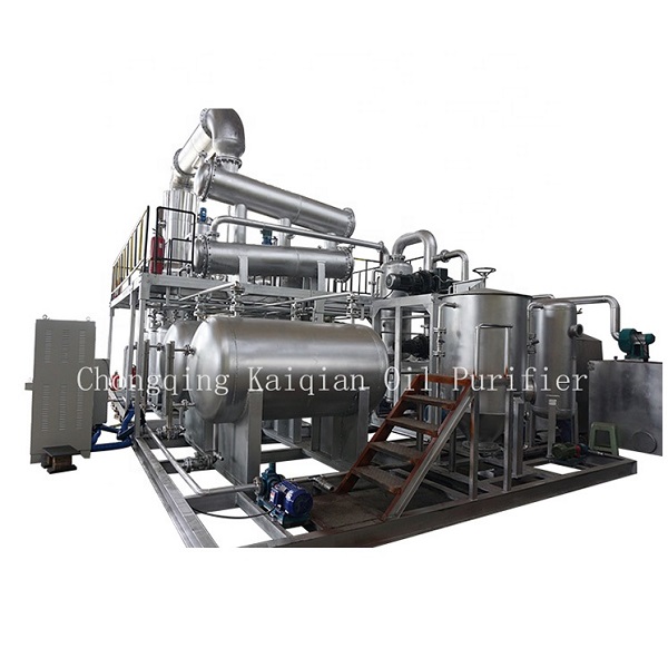 廢油分子蒸餾是一種新型的石油化工分離技術,它是在高真空技術條件下遠低于常壓沸點的分離過程。采用多級分子蒸餾技術,研究礦物質廢油獲得不同溫度及真空度條件下脫水、采集產品餾分,為高真空條件分離重質油提供了相關工藝參數,分子蒸餾工藝綜合應用廢油分子蒸餾工藝,通過高真空使沸點大幅度降低,從而使廢潤滑油中雜質脫除時不發(fā)生分子斷鏈和降解,既保證廢油提煉潤滑油產品黏度及閃點等指標合格,又確保廢油生潤滑油顏色淺,質量可達到或超過原潤滑油質量標準。