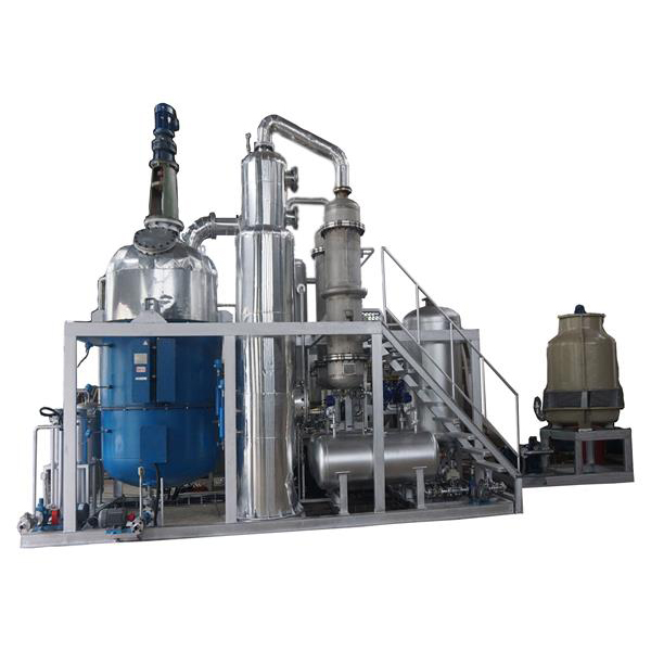 廢油脫色提煉設備工藝采用國內先進的減壓薄膜分子閃蒸技術,高真空條件(jue對壓力10Pa)下可在較低溫度下將高粘度組分的潤滑油蒸餾出來,同時也降低高溫裂解、聚合、設備堵塞等問題的發生。無酸渣、廢酸、廢水等二次污染物的產生,是一種清潔、環保、投資適當的凈化工藝。